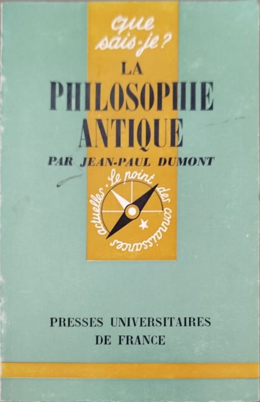 Presses Universitaires de France 1968 collection que sais je n°250. poche. 1968. broché. Ouvrage de synthèse de Jean-Paul Dumont spécialiste d'histoire de la philosophie antique qui présente les grandes figures et courants de la philosophie grecque (Socrate Platon Aristote stoïcisme épicurisme scepticisme) dans un format concis de la collection 'Que sais-je ?' des Presses Universitaires de France