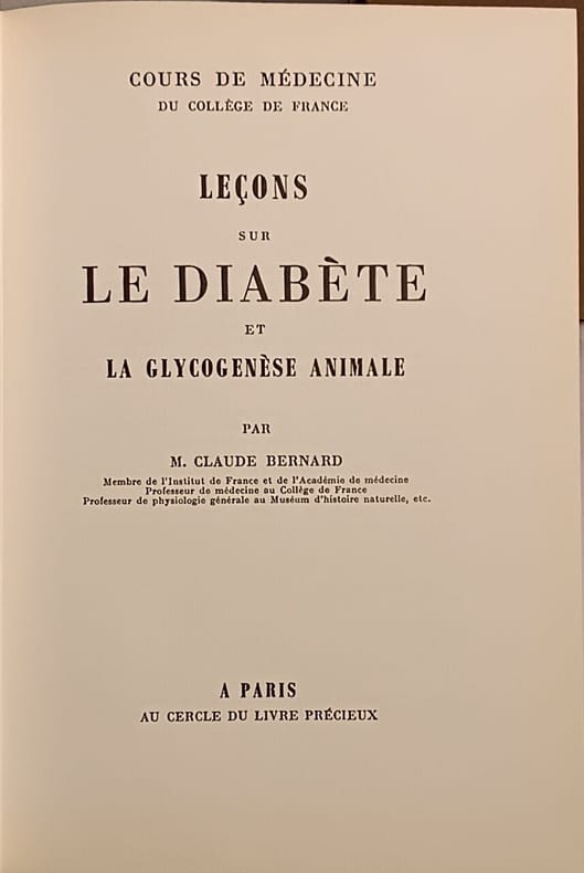 Au Cercle du Livre Précieux 1966 390 pages in8. 1966. Reliure editeur cartonnée. 390 pages. Recueil des leçons données par Claude Bernard au Collège de France rassemblant ses études physiologiques et pathologiques sur le diabète et la glycogénèse animale. L'ouvrage contient 21 leçons qui explorent les mécanismes de production du glycogène dans le foie et leurs perturbations dans le diabète