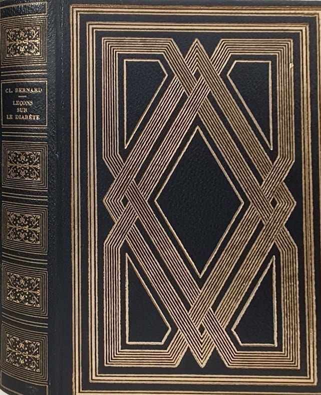 Paris, librairie J.-B. Baillère et fils, 1877 [1880], in-8, VIII-576 pp; cat. éd. in fine, Demi-chagrin vert, dos à nerfs fleuronné, Remise en vente de la première édition, avec catalogue éditeur daté décembre 1880 ajouté en fin de volume. Ce sont dans ces leçons que que le célèbre physiologiste établit que le foie est le siège du diabète. Ces études physiologiques et pathologiques furent l'objet des cours qu'il donna durant toute l'année au Collège de France. Une figure à pleine page (p. 104) représente le saccharimètre construit par Soleil. Ex-libris manuscrit sur la page de titre. Très légers frottements. Bon exemplaire. Garrison and Morton 3942 ; Heirs of Hippocrates 976. Couverture rigide