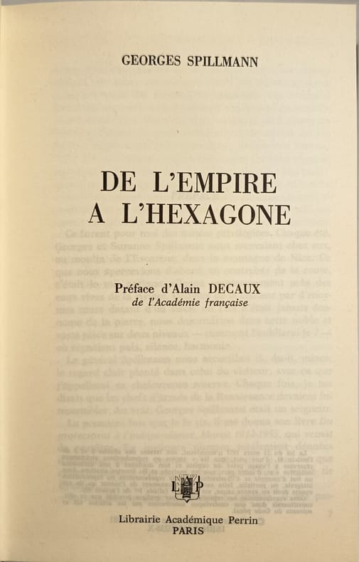 Librairie Académique Perrin 1981 385 pages in8. 1981. reliure editeur sous rodhoid. 385 pages. Ouvrage historique du général Georges Spillmann qui retrace l'histoire complète de la colonisation française et propose une analyse réfléchie des erreurs tragiques de la décolonisation et de leurs conséquences