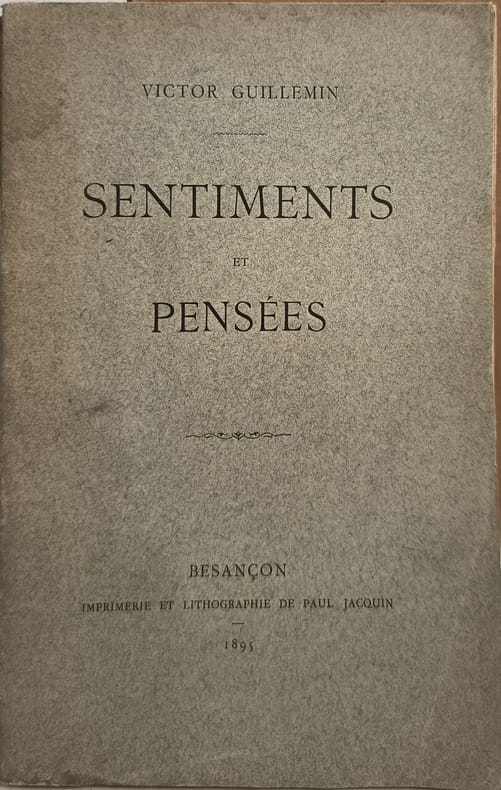Imprimerie et Lithographie de Paul Jacquin 1895 280 pages in8. 1895. broché. 280 pages. Ouvrage intitulé 'Sentiments et pensées' publié en 1895 à Besançon par l'imprimerie de P. Jacquin. Il s'agit d'un livre ancien de poésie de 280 pages