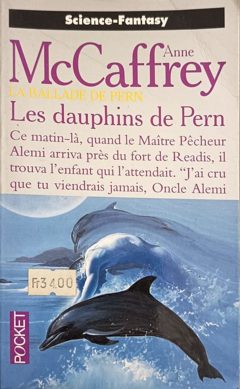 Pocket / Science-fiction 1999 318 pages poche. 1999. broché. 318 pages. Dans ce tome de la série 'La Ballade de Pern' l'intrigue se déroule 2500 ans après l'arrivée des colons sur la planète Pern. Les humains ayant perdu une grande partie de leurs connaissances et de leur technologie redécouvrent par hasard que les dauphins génétiquement modifiés qui les accompagnaient sont une race intelligente. L'histoire suit principalement deux jeunes personnages dont Readis Lilcamp dans leur quête pour restaurer le contact avec les dauphins affronter la menace des Fils (Thread) et assister à la naissance du Hall des Dolphineurs