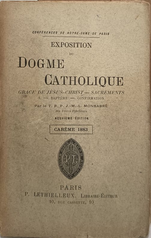 P. Lethielleux Libraire-Éditeur 1883 340 pages in8. 1883. broché. 340 pages. Ce livre est le tome 13 de l'Exposition du dogme catholique une série de conférences données à Notre-Dame de Paris par le Père Monsabré. Il traite spécifiquement de la grâce de Jésus-Christ et des sacrements avec un focus sur le baptême et la confirmation dans un exposé magistral de la doctrine sacramentelle