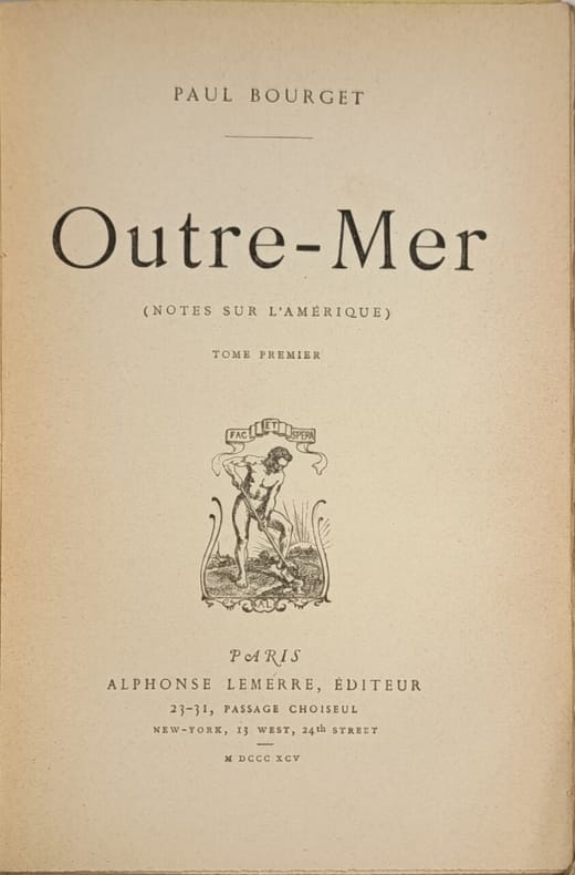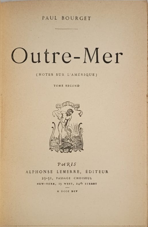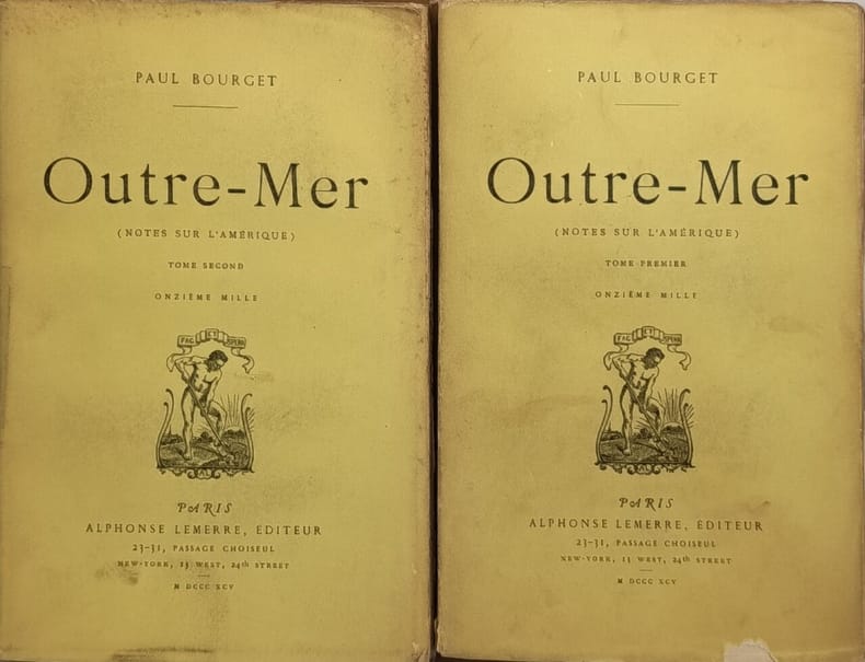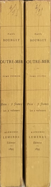 Alphonse Lemerre 1895 313-330 pages in8. 1895. broché. 2 volume(s). 313-330 pages. Outre-mer (Notes sur l'Amérique) est le récit du voyage de huit mois effectué par Paul Bourget aux États-Unis en 1893-1894. L'ouvrage présente ses impressions et analyses sur la société américaine de l'époque abordant des thèmes comme le pouvoir des industriels et la vie moderne