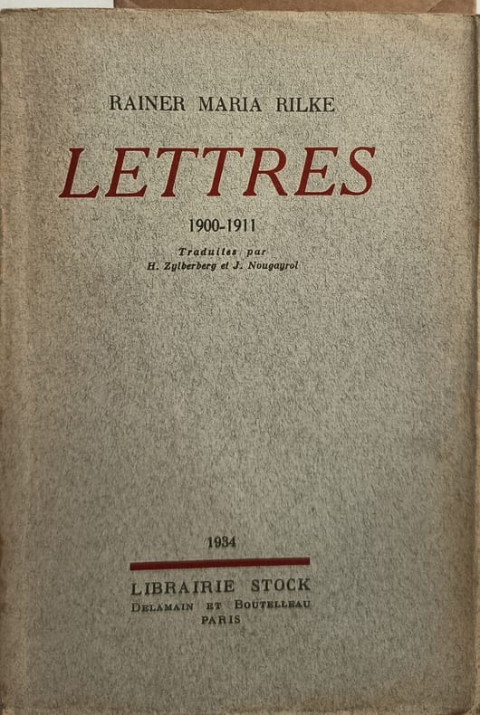 Librairie Stock 1934 245 pages in8. 1934. broché. 245 pages. Ce livre est un recueil de lettres écrites par le poète Rainer Maria Rilke entre 1900 et 1911 sélectionnées à partir de sa correspondance complète et traduites en français par H. Zylberberg et J. Nougayrol. L'édition originale date de 1934 et est publiée par la Librairie Stock