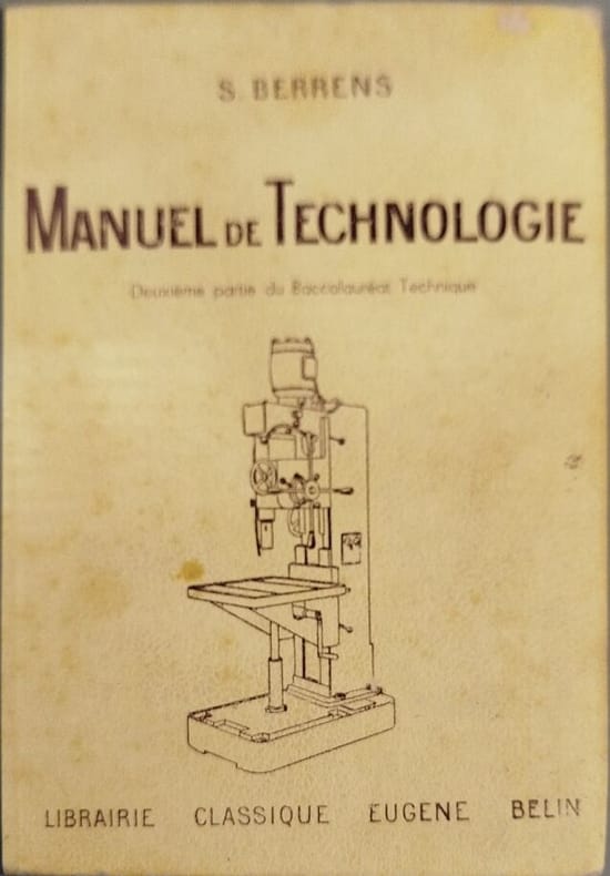 Librairie Classique Eugène Belin 1953 182 pages in8. 1953. Reliure editeur cartonnée. 182 pages. Manuel de technologie en deux parties destiné aux élèves de l'enseignement technique et des cours professionnels ainsi qu'aux candidats préparant le baccalauréat technique (2e partie) et le concours d'entrée aux ENIAM. Écrit par S. Berrens professeur au lycée Chaptal et à l'école d'électricité industrielle de Paris et publié par les éditions Belin dans les années 1940-1950