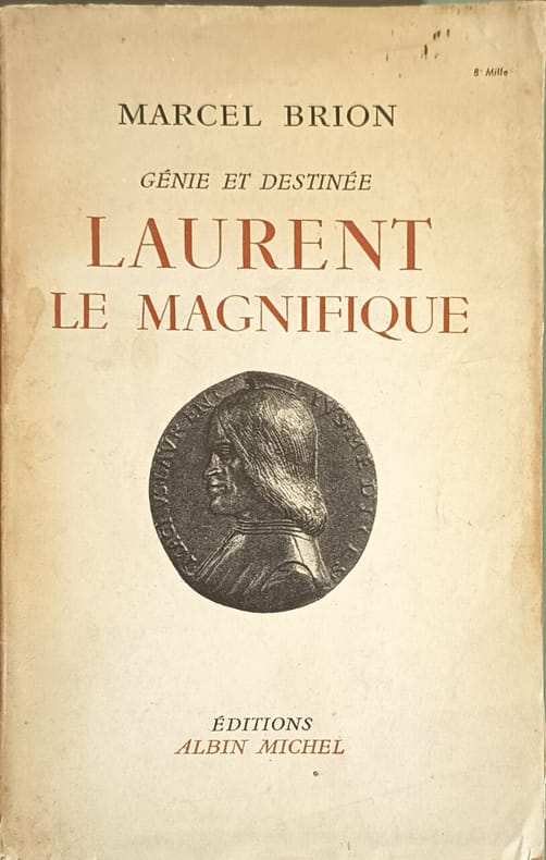 ALBIN MICHEL 1947 367 pages in8. 1947. broché. 367 pages. Cette biographie de Laurent de Médicis écrite par Marcel Brion retrace l'histoire de la famille Médicis depuis ses origines jusqu'à l'apogée de Laurent le Magnifique. L'auteur reconnu pour son talent de conteur présente les figures marquantes de la famille le contexte politique et culturel de Florence et campe avec brio les personnages historiques dans un récit fluide et passionnant