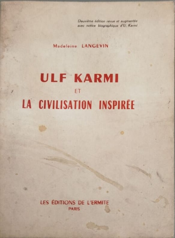 Les Éditions de l'Ermite 1952 37 pages in8. 1952. agrafé. 37 pages. Ce livre de Madeleine Langevin publié en 1952 aux Éditions de l'Ermite est une étude ou un essai de 37 pages consacré à la figure d'Ulf Karmi et à sa conception d'une « civilisation inspirée ». Il s'agit d'une seconde édition parfois présentée comme un ouvrage de sciences humaines et spiritualité
