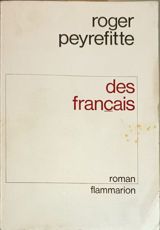 Flammarion 1970 288 pages in8. 1970. broché. 288 pages. Des Français est un roman satirique de Roger Peyrefitte qui dresse un portrait critique de la haute société parisienne au lendemain des événements de Mai 68. Le lecteur est promené à travers divers milieux des salons de coiffure huppés aux clubs sélects pour observer les mœurs et l'hypocrisie du « Tout-Paris »
