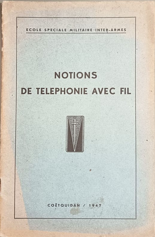 Coëtquidan 1947 31 pages in12. 1947. agrafé. 31 pages. Manuel technique militaire publié par l'École spéciale militaire interarmes de Coëtquidan faisant partie d'un cours de transmissions et traitant des notions de téléphonie avec fil destiné à la formation des officiers