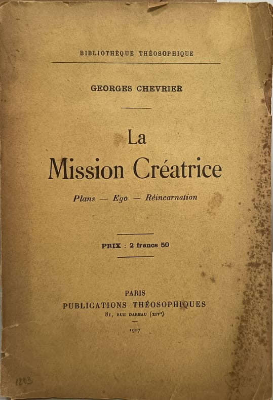 Publications Théosophiques 1917 in8. 1917. broché. Ouvrage de Georges Chevrier publié en 1917 qui explore des concepts théosophiques fondamentaux tels que les plans de l'existence la nature de l'ego et la réincarnation en examinant le processus de manifestation à partir du chaos universel non-manifesté