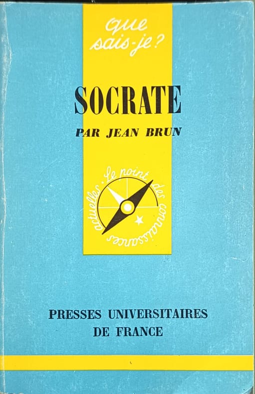 1ere édition, 1960 Contents, Chapitres : Socrate et l'histoire - 1. La personne de Socrate : La vie - L'existence - 2. Le message de Socrate : Le connais-toi toi-même - Le démon de Socrate - L'ironie socratique - 3. La présence de Socrate : Le visage - La mort - L'héritage - Bibliographie sommaire couverture à peine brunie, avec une legere trace de pliure au coin du plat supérieur, papier un peu jauni, quelques traits à l'encre dans les marges de 7 à 8 pages, sinon propre, le texte restant toujours très lisible - format de poche