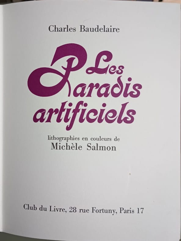 Club du Livre 1990 183 pages IN4. 1990. reliure editeur. 183 pages. Les Paradis Artificiels est un essai de Charles Baudelaire explorant les effets du haschisch et de l'opium sur l'esprit humain en particulier leur relation avec la création poétique et artistique. L'ouvrage à la croisée de l'observation de la confession et de la réflexion philosophique examine les altérations psychiques provoquées par ces substances et dénonce la recherche d'un idéal illusoire à travers l'ivresse