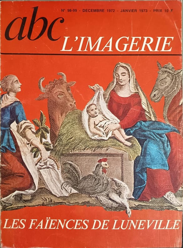 Revue, Paris, 1972, br., in-4, couv. ill. coul. éd., 90 - XXX pp., très nb. photos coul. et reproductions en coul. de documents anciens, nb. publicités en coul. et en noir, L'Imagerie Populaire Française - L'Histoire des Tailleurs d'Images - Les Moulins à Papier - Cartiers et Dominotiers - De bourgades en villages. Par André Jacquemin. 44 pages. II. Les Faïences de Lunéville ou le Triomphe de la Rocaille. 40 pages. III. Delval, une Technique chatoyante. Par Bernard Dimey. Renoux, le parfum et les couleurs de l'enfance. La Femme dans l'Oeuvre de Pierre Cornu. Par André Weber. Rovira, Peintre du Soleil. Pas courant. Très bon état