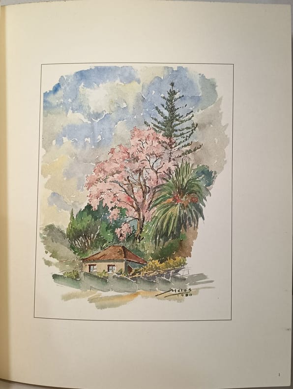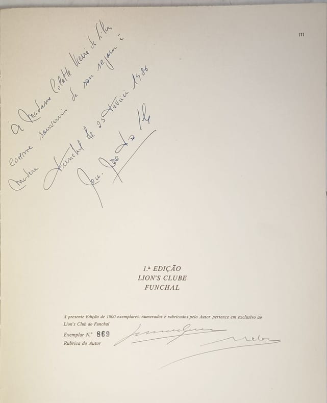 Lion's club do funchal 1986 infolio. 1986. Broché couverture rempliée. Livre d'art présentant une collection d'aquarelles du Dr. João de Lemos Gomes documentant des recoins artistiques de Funchal (Madeira) entre 1964 et 1984. L'ouvrage comprend une introduction d'António Aragão traduite en anglais et français et contient 36 folios de reproductions de gravures. Il s'agit d'une édition limitée à 1000 exemplaires numérotés et signés par l'auteur publiée par le Lions Clube do Funchal en 1987