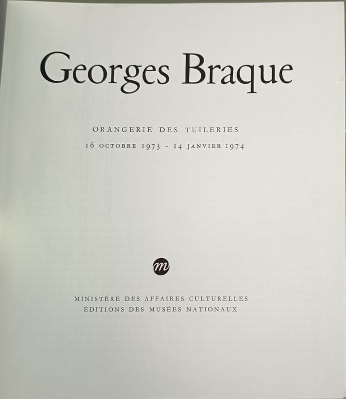 Ministère de Affaires Culturelles / Editions des Musées Nationaux, 1973, in-4 br. carré (21 x 23,5), XVI-185 p., un portrait de Braque en front., 136 reproductions en n. et b. et 16 en coul., bon état.