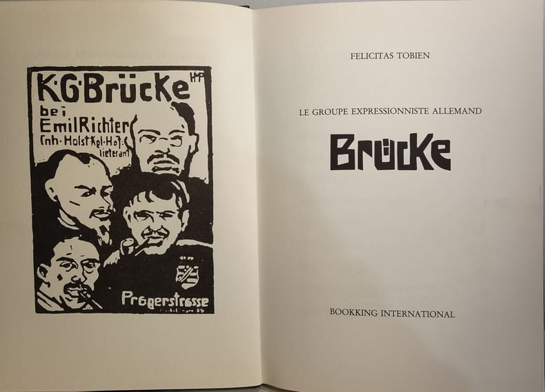 BOOKKING INTERNATIONAL 144 pages IN4. Sans date. Reliure editeur cartonnée. 144 pages. Ce livre est une monographie consacrée au groupe expressionniste allemand 'Die Brücke' fondé à Dresde en 1905. L'ouvrage richement illustré en noir et blanc et en couleurs analyse le mouvement artistique et ses membres