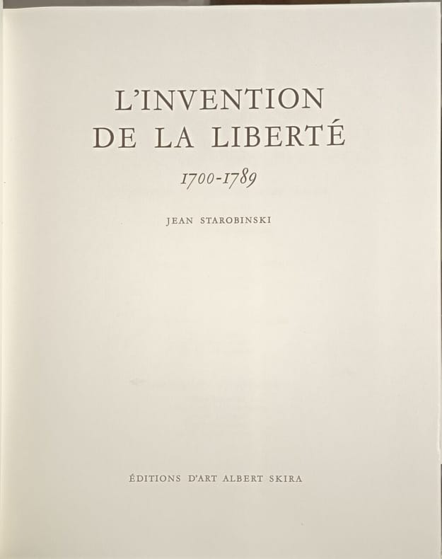 ÉDITIONS D'ART ALBERT SKIRA 1964 222 pages IN4. 1964. Reliure Editeur avec jaquette sous rodhoid. 222 pages. Cet ouvrage de Jean Starobinski analyse comment la pensée des Lumières en rejetant la théologie de la Chute et en réhabilitant la nature humaine a placé au premier plan les données de la vie sensible et du sentiment tout en faisant appel à la volonté éclairée inventant ainsi le concept moderne de liberté. Il explore les liens entre les beaux-arts et la pensée philosophique en Europe au XVIIIe siècle montrant la complexité de cette époque fondatrice