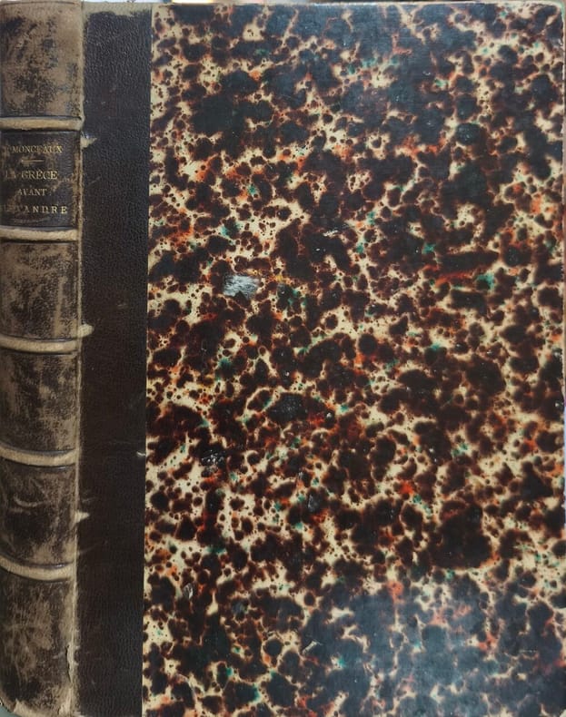 Ancienne Maison Quantin Librairies-Imprimeries Réunies 1892 320 pages in8. 1892. reliure éditeur demi basane dos à nerfs. 320 pages. Ouvrage historique de Paul Monceax publié en 1892 qui propose une étude complète de la société grecque aux VIe Ve et IVe siècles avant J.-C. période considérée comme l'apogée de la civilisation grecque avant Alexandre le Grand. L'auteur y examine systématiquement divers aspects de cette société : religion propriété famille État constitution de l'unité nationale art et vie quotidienne
