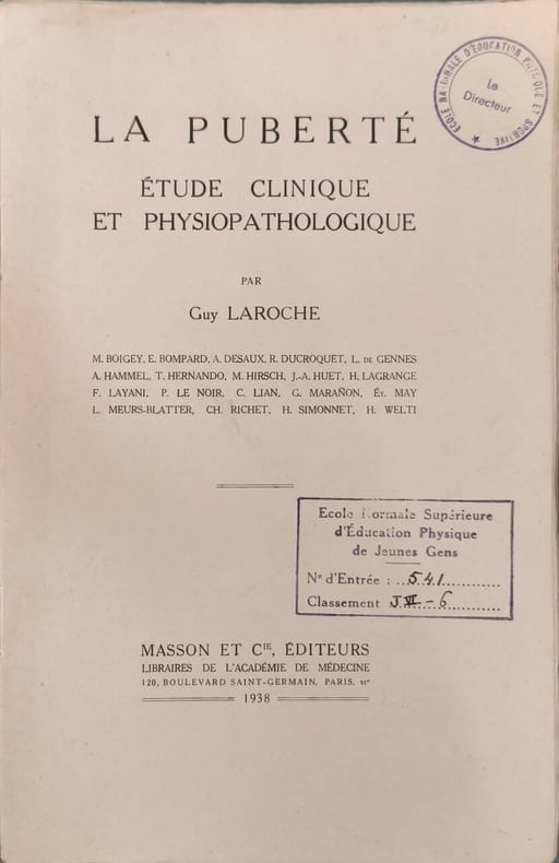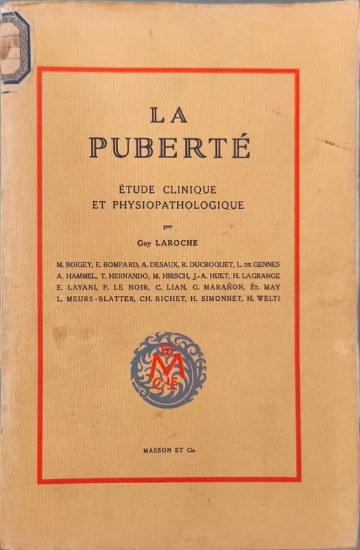 Masson et Cie 1938 346 pages in8. 1938. broché. 346 pages. Ouvrage scientifique collectif dirigé par Guy Laroche offrant une étude approfondie de la puberté sous ses aspects cliniques et physiopathologiques. La deuxième édition de 1956 compile les contributions de plusieurs experts sur des sujets comme le mécanisme de la puberté ses relations avec la tuberculose et l'anorexie mentale post-pubertaire. Il s'agit d'un travail de référence en langue française destiné aux professionnels de la médecine