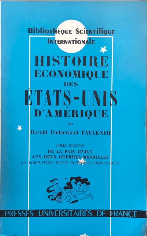 Presses Universitaires de France 1958 754 pages in8. 1958. broché. 754 pages. Ouvrage de référence de Harold Underwood Faulkner publié initialement en 1924 et traduit en français en 1958 qui retrace l'histoire économique des États-Unis depuis leurs origines jusqu'au milieu du XXe siècle. L'œuvre est présentée en deux tomes et constitue un classique de l'enseignement universitaire américain offrant un tableau général de l'évolution économique du pays