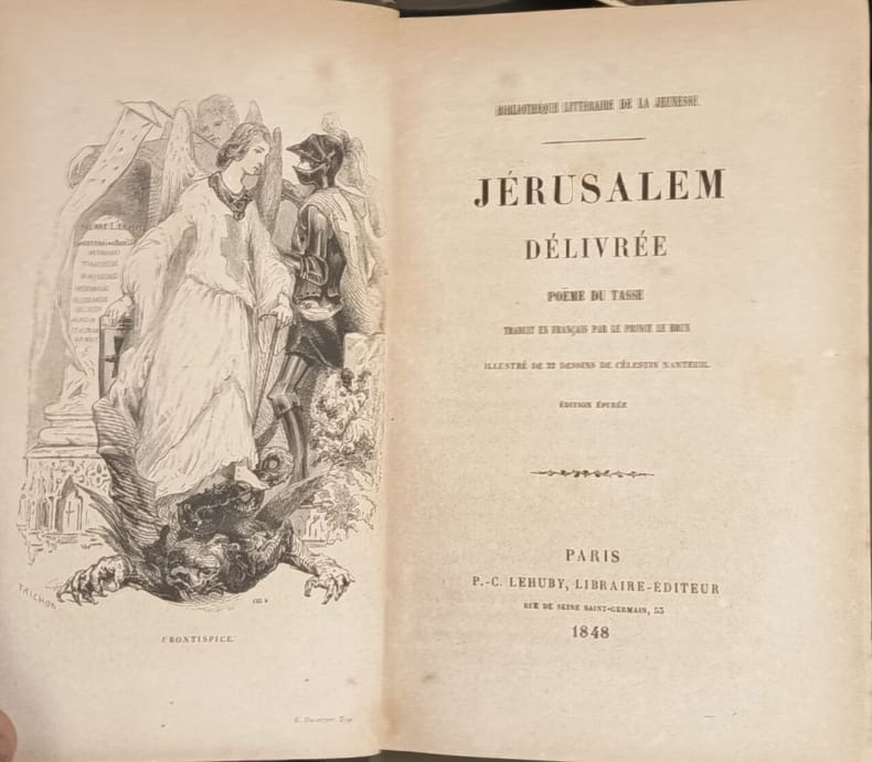 P.-C. Lehüby Libraire-Éditeur 2026 406 pages in8. 2026. reliure éditeur demi chagrin dos à nerfs. 406 pages. La Jérusalem délivrée est un poème épique du Tasse (1544-1595) adapté pour la jeunesse par l'éditeur LeHuby. Il relate la première croisade menée par Godefroi de Bouillon et la conquête de Jérusalem en 1099