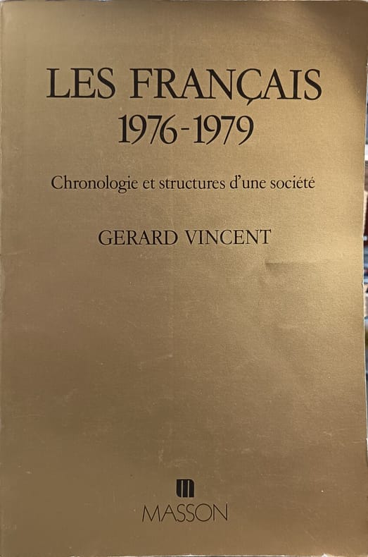 Masson 1980 191 pages in8. 1980. Broché. 191 pages. Cet ouvrage de Gérard Vincent publié en 1980 propose une analyse chronologique et structurelle de la société française entre 1976 et 1979. Il s'inscrit dans la continuité d'un précédent volume à succès et offre un examen détaillé "au jour le jour" des évolutions sociales de cette période