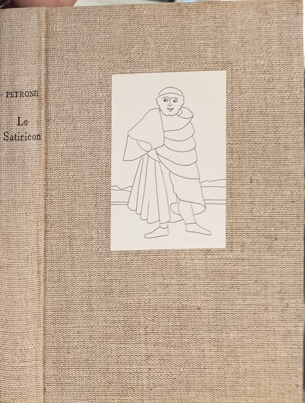 Le livre club du libraire 1959 234 pages in8. 1959. reliure editeur pleine toile. 234 pages. Le Satiricon de Pétrone est un roman antique du Iᵉʳ siècle qui décrit les aventures picaresques de trois jeunes viveurs (Encolpe Ascylte et Giton) dans l'Italie méridionale sous le règne de Néron. L'œuvre offre une peinture satirique et naturaliste des mœurs et de la vie quotidienne romaine mêlant épicurisme et critique des superstitions