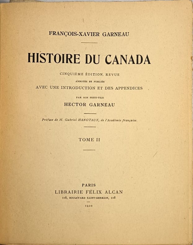 'Bibliothèque France-Amérique'. 5e édition revue et annotée par Hector Garneau. Préface de G. HANOTAUX de l'A.F. Classification Dewey : 971-Canada