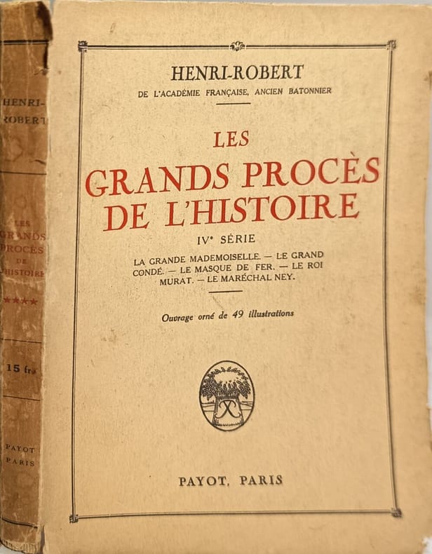 Payot 1925 236 pages in8. 1925. broché. 236 pages. Cette série en dix volumes publiée initialement en 1926 relate les grands procès qui ont marqué l'Histoire. L'auteur Henri Robert raconte avec un rythme enlevé l'atmosphère de ces moments judiciaires mémorables invitant le lecteur à assister comme un spectateur privilégié à des drames où les destins se jouent