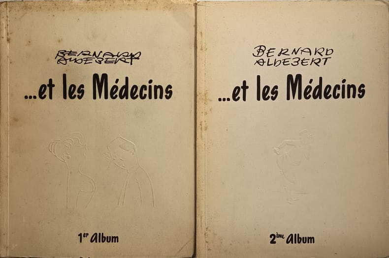 Chez l'auteur 1958 in8. 1958. broché. 2 volume(s). Album publicitaire des années 1950 édité par les Editions Labo présentant une série de planches en couleurs dessinées par Bernard Aldebert. Chaque double-page associe une publicité pour un médicament à une illustration humoristique sur le thème des médecins