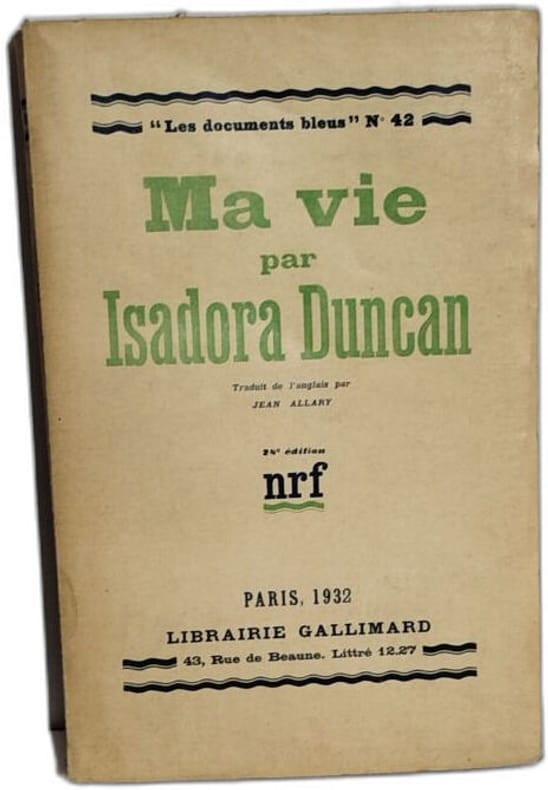 Isadora Duncan. Ma vie. Jean Allary. In French /Isadora Duncan (Aysedora Dunkan). Ma vie (Moya zhizn). Per. na fr. Jean Allary. Book in French. Series (Les documents bleus # 42). Paris Fibrairie Gallimard 1928. 383 p., 19x12 sm. We have thousands of titles and often several copies of each title may be available. Please feel free to contact us for a detailed description of the copies available. SKUalbfc9fbfb0931f5992.