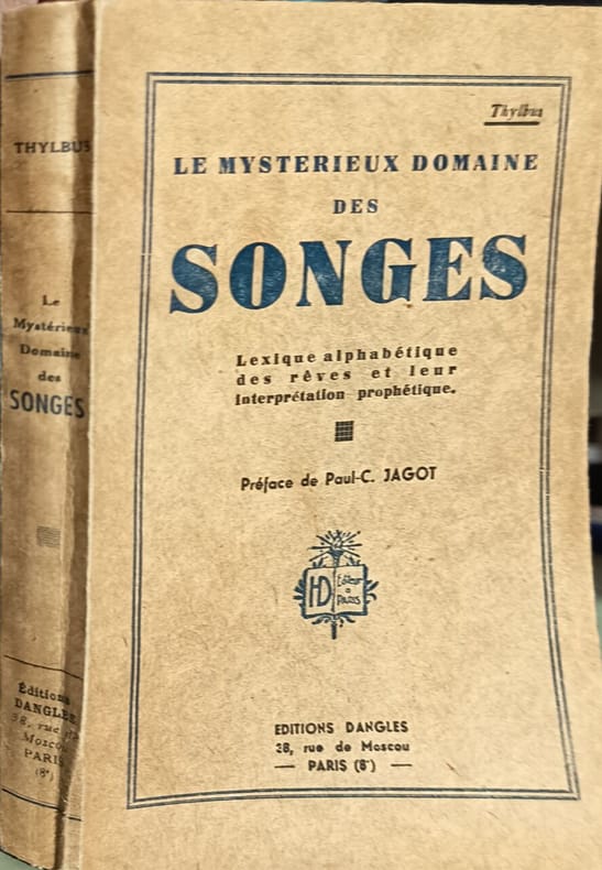 Editions Dangles Paris S.D.(1947) In-8 ( 190 X 120 mn ) de 196 pages, broché sous couverture imprimée. Préface de Paul-C JAGOT. Lexique alphabétique des rêves et leur interprétation prophétique. Bel exemplaire.
