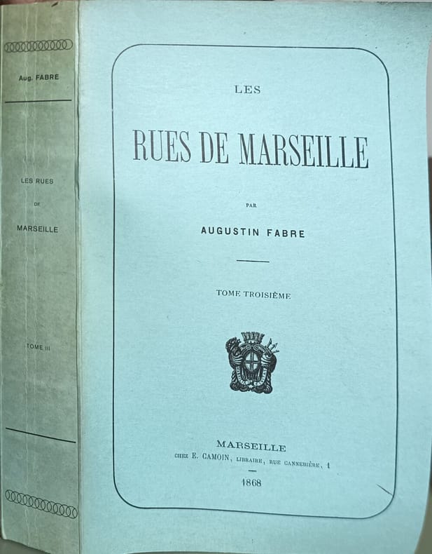 chez E. Camoin Libraire 1867 500 pages in8. 1867. broché. 500 pages. Il s'agit d'une réédition de l'œuvre originale d'Augustin Fabre publiée entre 1867 et 1869 qui constitue une étude historique approfondie et documentée des rues de Marseille. L'ouvrage composé de plusieurs tomes s'inscrit dans une politique de conservation patrimoniale