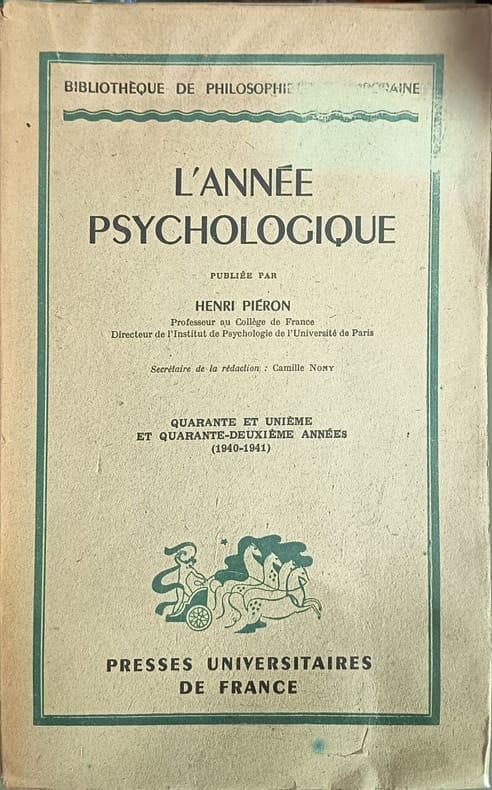 L'ANNÉE PSYCHOLOGIQUE - Publiée par Henri Piéron , Alfred Fessard et Paul Fraisse/ Secrétaire de rédaction: Vincent Bloch/ Secrétaire de rédaction adjoint: César Florès - Publiée avec le concours du centre national de la recherche scientifique