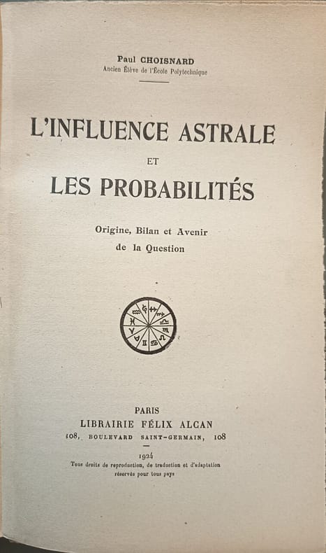 Librairie Félix Alcan 1924 249 pages in8. 1924. broché. 249 pages. Ouvrage de Paul Choisnard polytechnicien publié en 1924 qui présente une approche scientifique de l'astrologie en s'appuyant sur des statistiques et des probabilités pour étudier l'influence astrale. Le livre inclut également des écrits rares de Kepler traduits en français et aborde la question de la 'loi d'hérédité astrale'