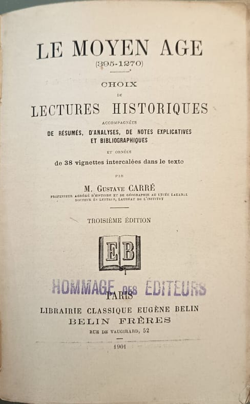 3e édition. Accompagné de résumés, d'analyse, de notes, et orné de 38 vignettes dans le texte, par M. Gustave Carré. Classification Dewey : 940.1-Moyen-Age