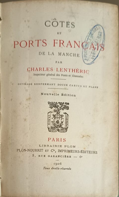 Plon-Nourrit et Cie imprimeurs-éditeurs 1906 467 pages in12. 1906. pleine toile éditeur. 467 pages. Ouvrage de 1901 par l'ingénieur Charles Lenthéric spécialiste du littoral qui traite des côtes et ports français de l'océan en abordant l'interaction entre l'action humaine et les processus naturels à travers le temps. Le livre combine histoire géographie et économie dans un langage accessible et comprend des cartes et plans