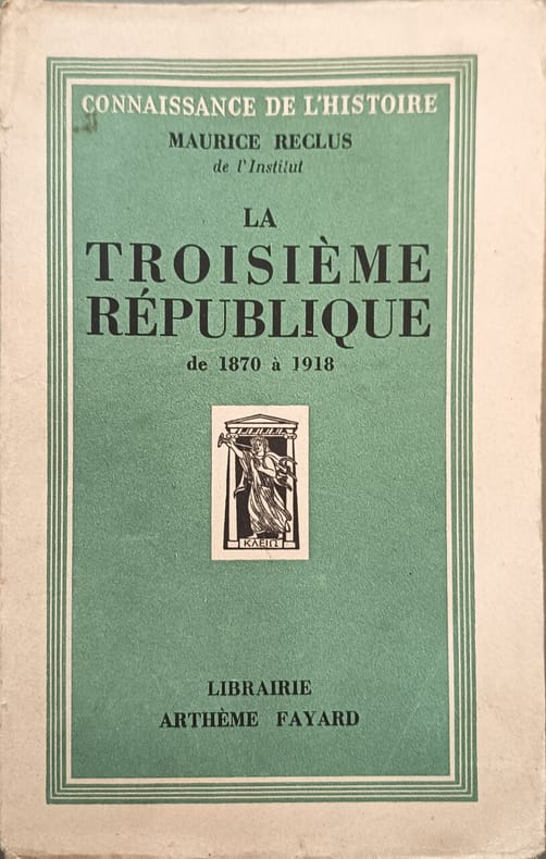 Librairie Arthème Fayard 2026 312 pages in12. 2026. broché. 312 pages. Ouvrage historique de Maurice Reclus haut-fonctionnaire et historien analysant la Troisième République française depuis sa proclamation en 1870 jusqu'à la fin de la Première Guerre mondiale en 1918. Le livre publié par la Librairie Arthème Fayard dans les années 1930-1940 se présente comme un essai sur cette période considérée comme une 'Grande Époque'