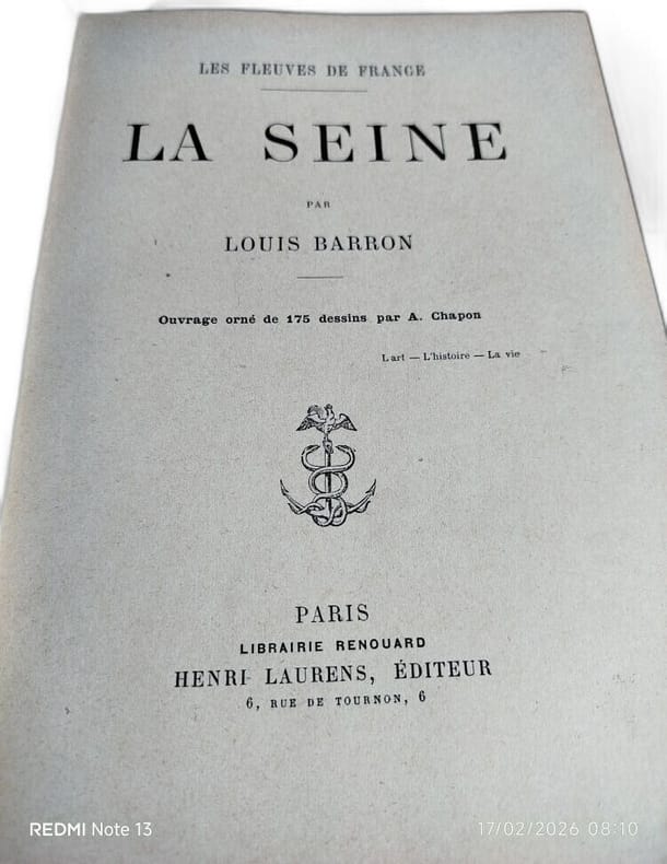 Henri laurens 1902 302 pages grand in8. 1902. reliure editeur. 302 pages. La Seine de Louis Barron est un ouvrage du début du XXe siècle consacré au fleuve français appartenant à la collection 'Les fleuves de France'. Il s'agit d'une réédition patrimoniale richement illustrée de dessins décrivant le cours du fleuve à travers les régions qu'il traverse