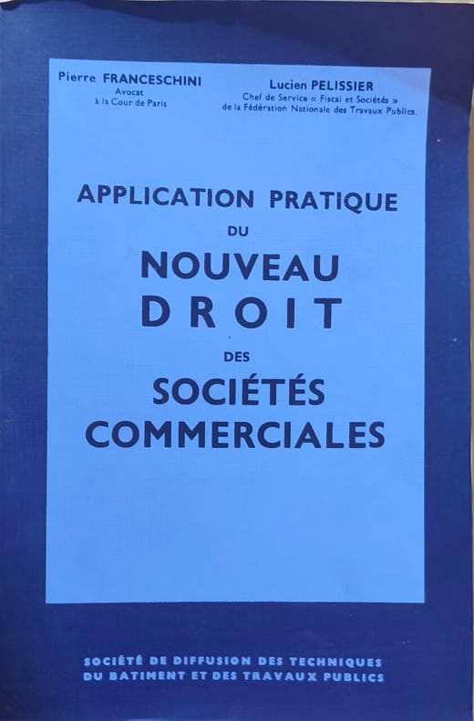 Société de Diffusion des Techniques du Batiment et des Travaux Publics 1968 466 pages in8. 1968. broché. 466 pages. Ouvrage pratique dédié à l'application du nouveau droit des sociétés commerciales présentant les règles avec clarté et illustré de nombreux exemples concrets. Il s'agit d'un ouvrage complet en jurisprudence et doctrine publié par la Société de diffusion des techniques du bâtiment et des travaux publics