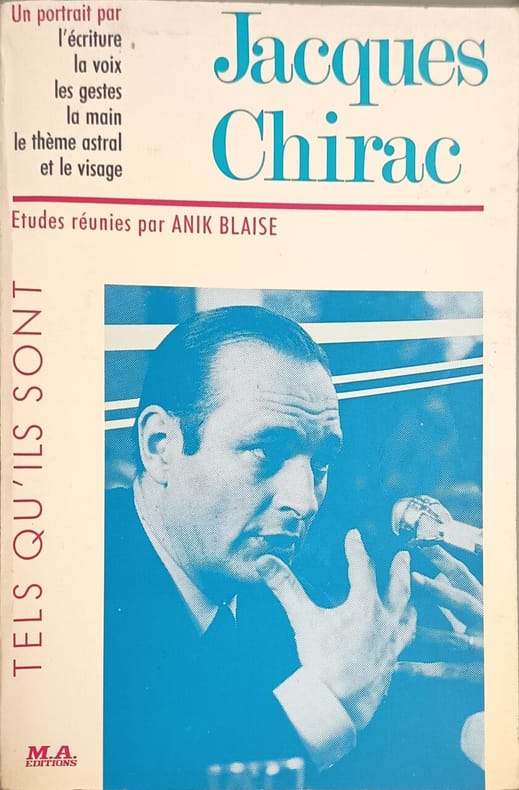 ma editions 1984 126 pages 19X28. 1984. broché. 126 pages. Ce livre propose un portrait multidimensionnel de Jacques Chirac ancien Président de la République française à travers l'analyse de son écriture de sa voix de ses gestes de sa main de son thème astral et de son visage. L'ouvrage combine des éléments biographiques politiques avec une approche plus personnelle et caractérielle