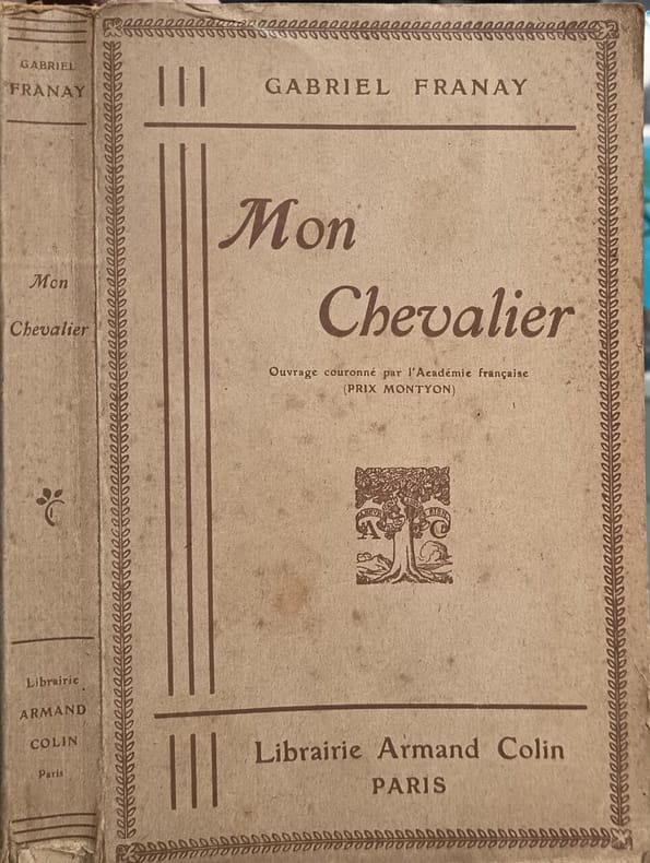 Librairie Armand Colin 1927 332 pages in8. 1927. broché. 332 pages. Mon Chevalier de Gabriel Franay (pseudonyme de Mme Louis Quioc) est un ouvrage publié en 1896 par Armand Colin qui a reçu le Prix Montyon de l'Académie Française. Le roman évoque l'amour d'une jeune fille pour un jeune homme qu'elle épouse et que son imagination pare de toutes les qualités attribuées aux anciens preux chevaliers
