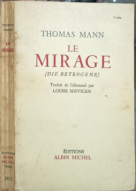 Éditions Albin Michel 1954 187 pages in8. 1954. broché. 187 pages. Le Mirage est un court roman de Thomas Mann publié en 1953. Il raconte l'histoire de Rosalie von Tümmler une veuve de cinquante ans qui redécouvre l'amour grâce à un jeune homme dans les années 1920 à Düsseldorf. L'œuvre explore les rapports entre l'amour et la maladie un thème cher à l'auteur