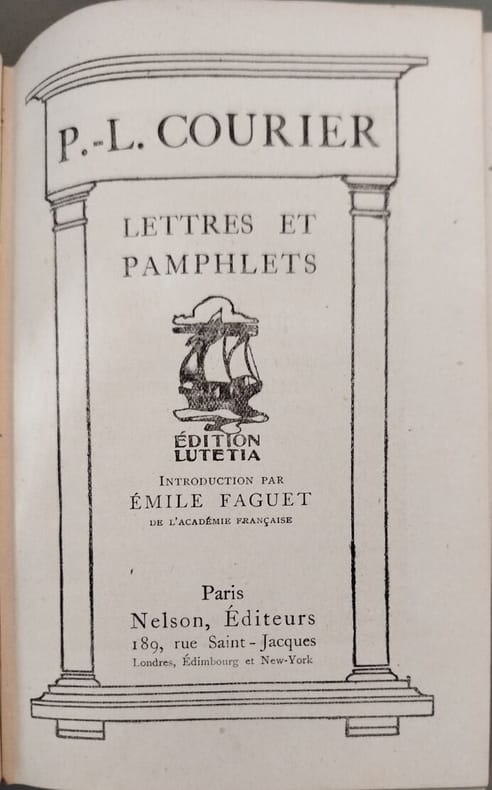 Nelson Editeurs 477 pages in12. Sans date. cartonné. 477 pages. Lettres et pamphlets rassemble les écrits polémiques de Paul-Louis Courier témoin et critique de la période de la Révolution de l'Empire et de la Restauration. L'ouvrage publié par l'éditeur Nelson compile une série de lettres adressées à des directeurs de journaux formant l'ensemble de ses pamphlets politiques caractérisés par leur esprit d'insubordination et leur critique des puissants
