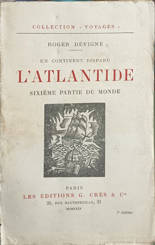 Les Éditions G. Crès & Cie 1924 249 pages in8. 1924. broché. 249 pages. Ouvrage de Roger Dévigne publié en 1924 qui tente d'établir l'existence du continent mythique de l'Atlantide. L'auteur s'appuie sur les manuscrits aztèques les historiens de l'Antiquité et les découvertes scientifiques des années 1920 pour argumenter en faveur de l'existence de cette sixième partie du monde engloutie il y a plus de 10 000 ans