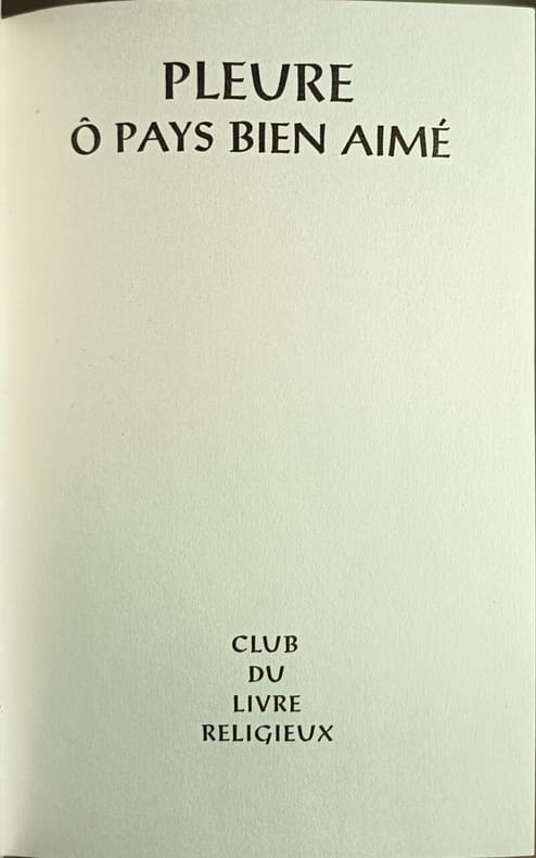 Club du Livre Religieux 2026 330 pages in8. 2026. reliure editeur pleine toile. 330 pages. Le roman suit le révérend Stephen Kumalo un pasteur noir d'un village d'Afrique du Sud qui se rend à Johannesburg pour aider sa sœur en difficulté. À travers son voyage l'œuvre explore les divisions raciales et sociales du pays sous l'apartheid tout en cherchant des thèmes d'espoir et de réconciliation. Publié en 1948 ce roman est devenu une œuvre majeure de la littérature engagée contre le racisme