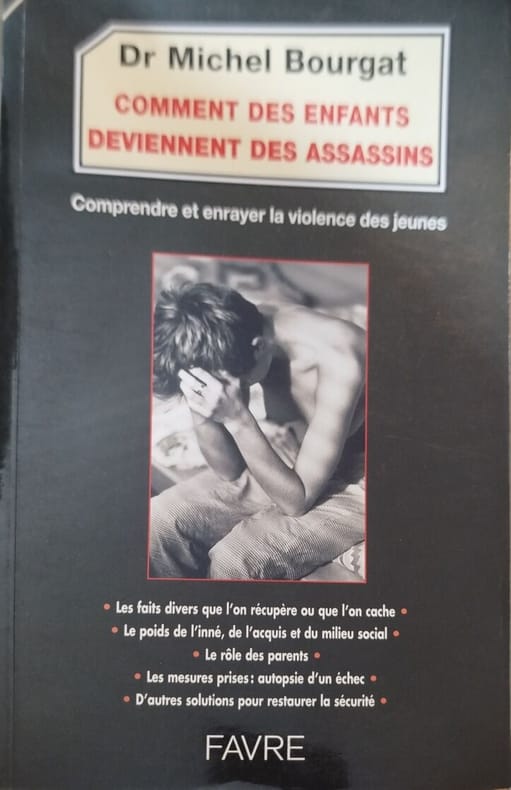 Favre 1999 271 pages 15cmx23 5cmx2 3cm. 1999. Broché. 271 pages. Le Dr Michel Bourgat médecin marseillais directement touché par la violence des mineurs analyse les causes et le contexte des meurtres commis par des enfants et adolescents. Basé sur trois années de recherches de terrain l'ouvrage examine le rôle de la société de l'entourage de la justice et des réseaux sociaux et propose des pistes concrètes pour enrayer ce fléau