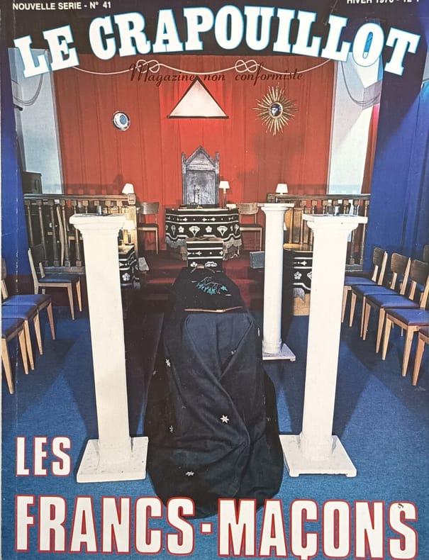 Société d'éditions Parisiennes Associées 1976 81 pages in4. 1976. broché. 81 pages. Le Crapouillot est une revue satirique et non conformiste française qui a consacré plusieurs numéros à la franc-maçonnerie abordant ses relations avec le pouvoir politique l'Église et son caractère secret. Le numéro 20 traite des sociétés secrètes en général tandis que le numéro 75 se concentre spécifiquement sur la franc-maçonnerie contemporaine