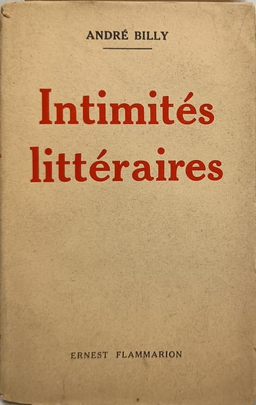 Ernest Flammarion 1932 246 pages in8. 1932. broché. première édition. 246 pages. Ouvrage de portraits littéraires d'André Billy publié en 1932 chez Ernest Flammarion divisé en trois parties : Notes et Souvenirs Lettres à la Tourangelle et Apollinaire vivant. Il offre un regard intime sur la vie intellectuelle française du début du 20e siècle